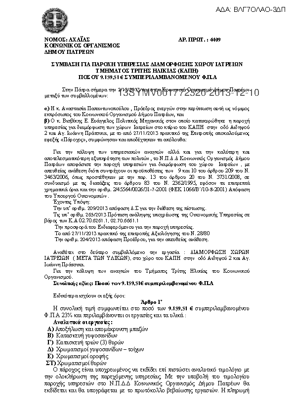 3. ΣΥΜΒΑΣΗ ΓΙΑ ΠΑΡΟΧΗ ΥΠΗΡΕΣΙΑΣ ΔΙΑΜΟΡΦΩΣΗ ΧΩΡΟΥ ΙΑΤΡΕΙΩΝ ΚΑΠΗ