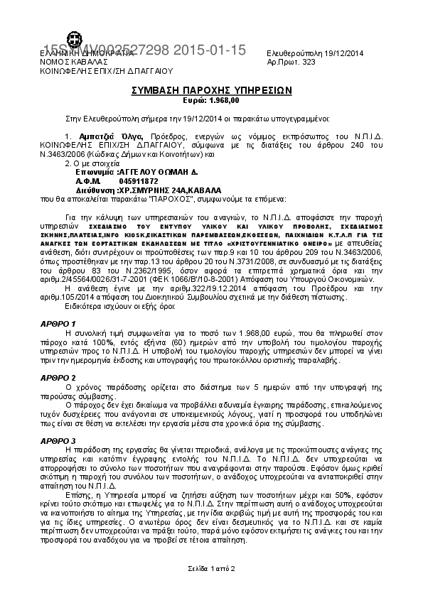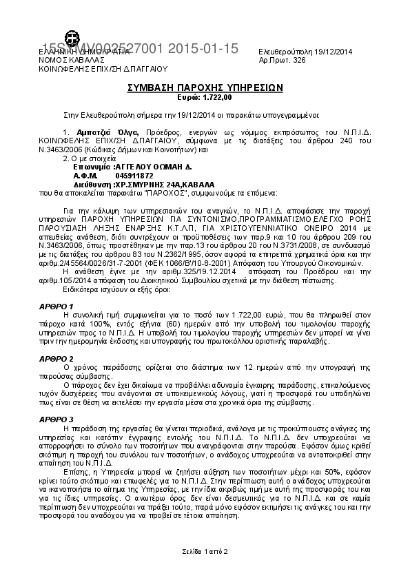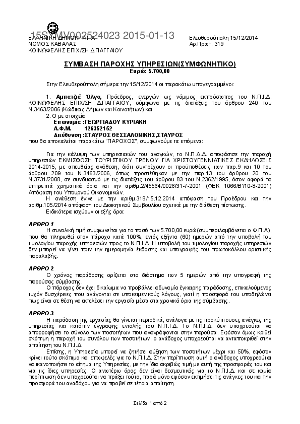 Αναζήτηση σε προκηρύξεις και συμβάσεις για: