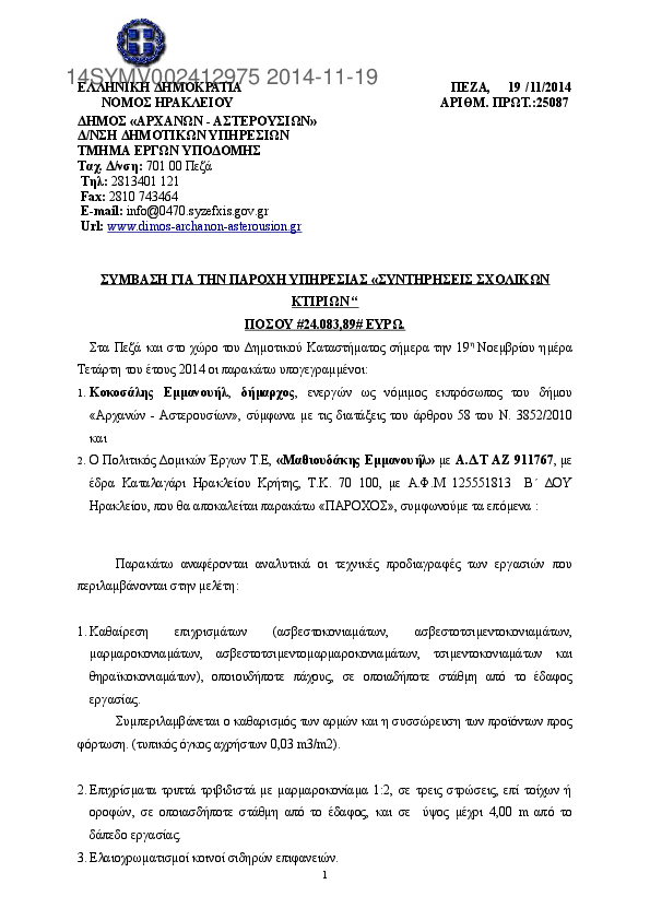 7. ΣΥΜΒΑΣΗ ΓΙΑ ΤΗΝ ΠΑΡΟΧΗ ΥΠΗΡΕΣΙΑΣ «ΣΥΝΤΗΡΗΣΕΙΣ ΣΧΟΛΙΚΩΝ ΚΤΙΡΙΩΝ “