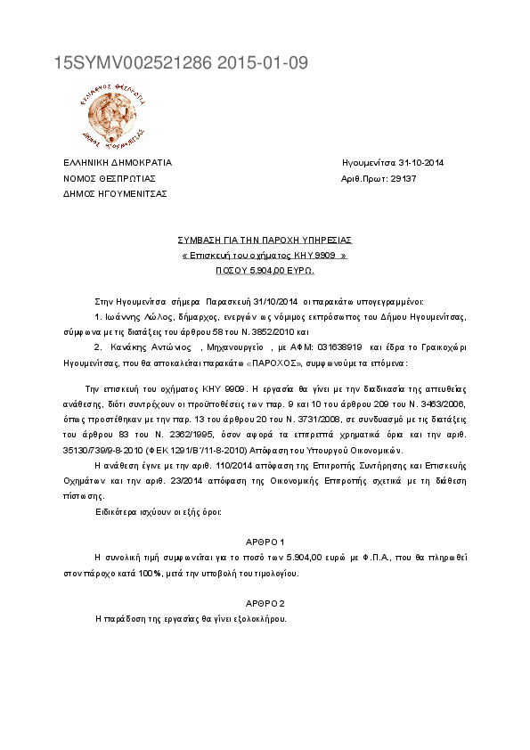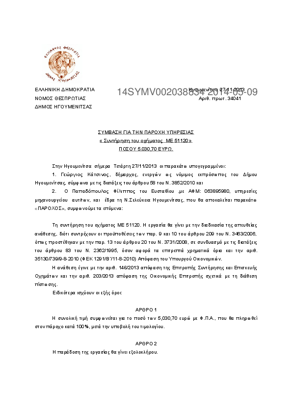 2. Συντήρηση οχήματος ΜΕ 51120 του Δήμου Ηγουμενίτσας