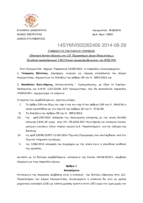 6. Επισκευή δικτύου ύδρευσης στην Δ.Ε. Παραποτάμου Δήμου Ηγουμενίτσας.