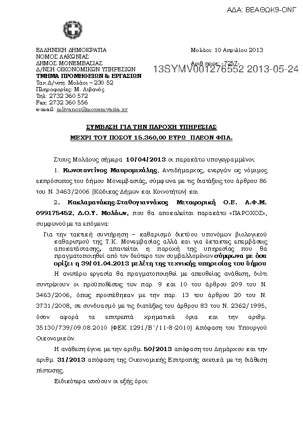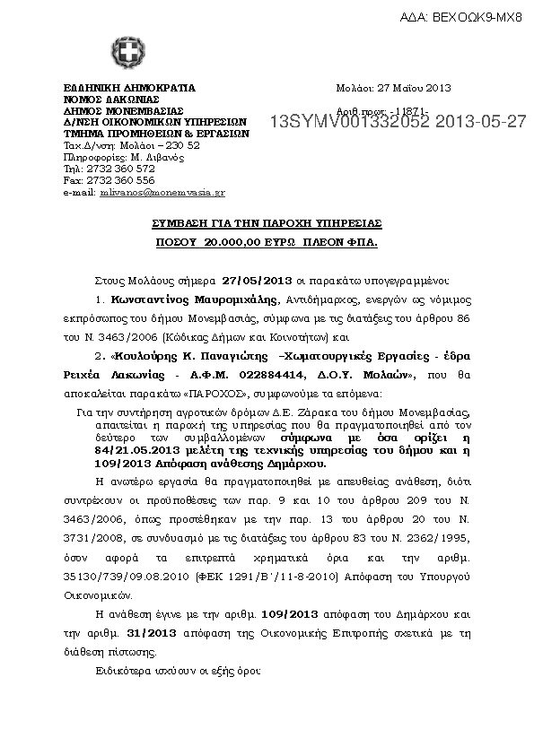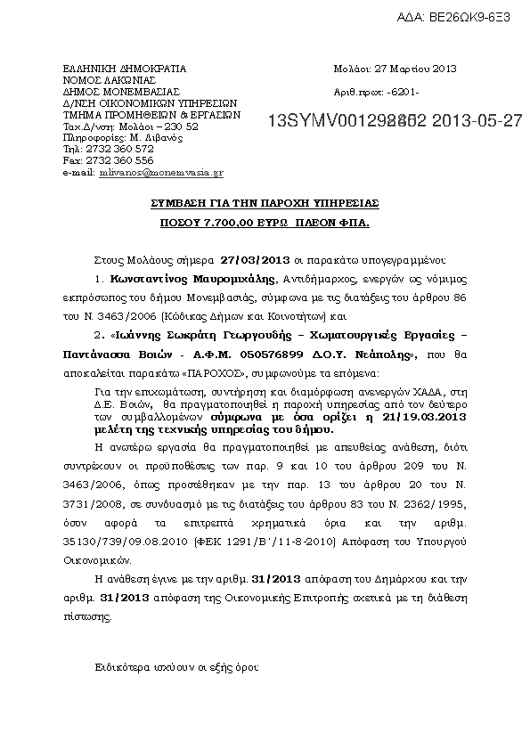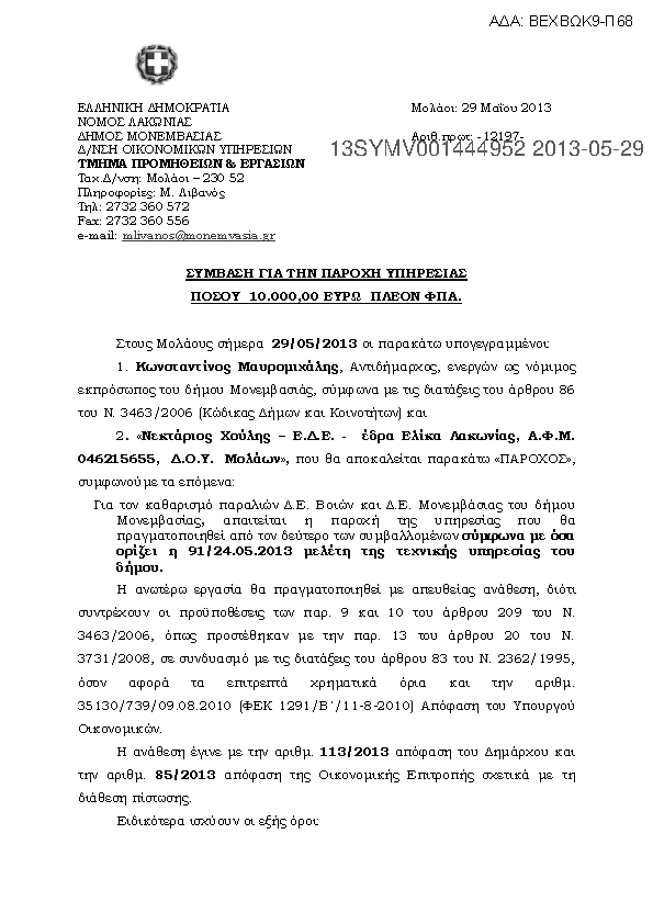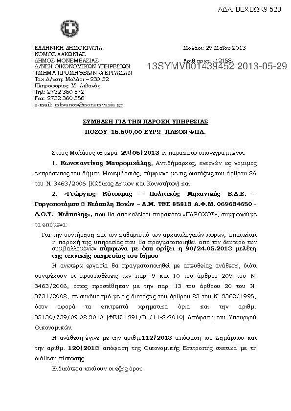 Αναζήτηση σε προκηρύξεις και συμβάσεις για: