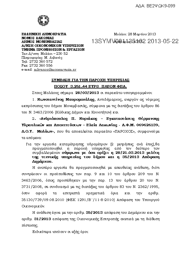 1. Καταμέτρηση υδρομέτρων Δ.Ε. Μολάων