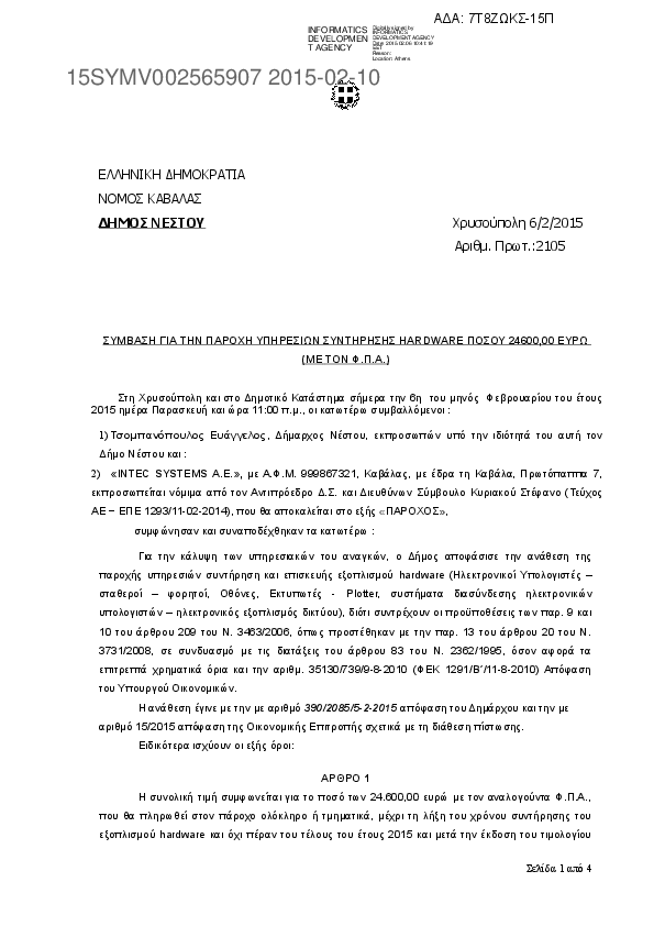 2. ΣΥΜΒΑΣΗ ΓΙΑ ΤΗΝ ΠΑΡΟΧΗ ΥΠΗΡΕΣΙΑΣ ΠΟΣΟΥ 24.600,00 ΕΥΡΩ (ME TON Φ.Π.Α.)