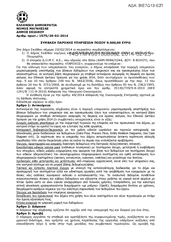 7. Σύμβαση για την μηχανογραφική υποστήριξη βάσεων δεδομέων των υπηρεσιών
