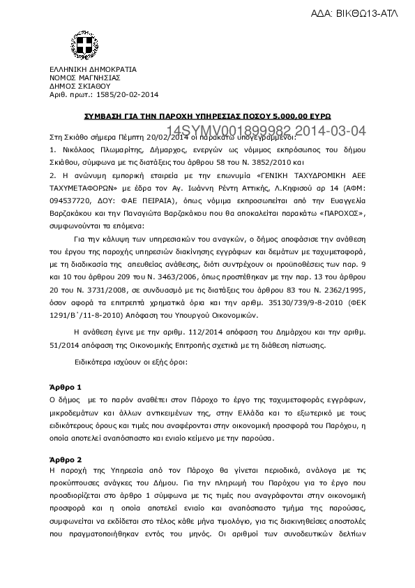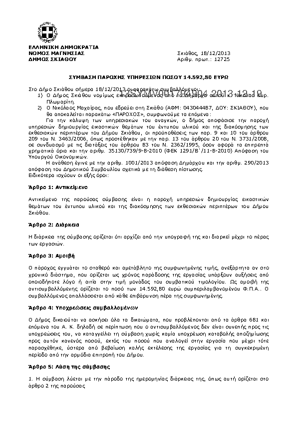 1. ΣΥΜΒΑΣΗ ΠΑΡΟΧΗΣ ΥΠΗΡΕΣΙΩΝ ΠΟΣΟΥ 14.592,80 ΕΥΡΩ