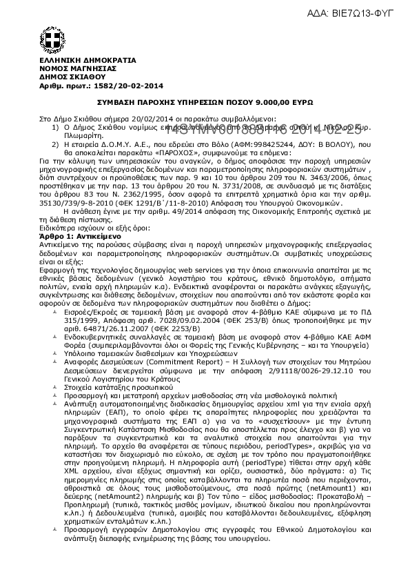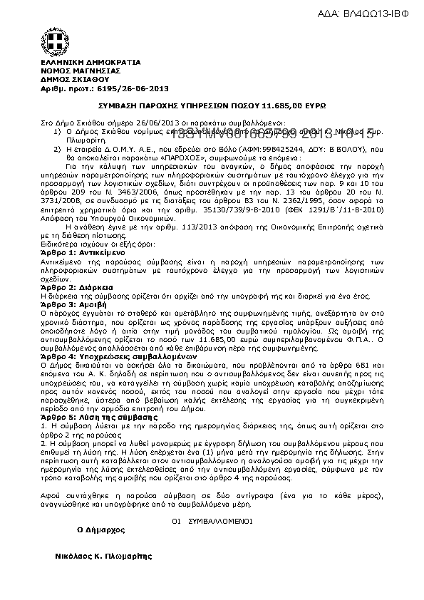 3. Σύμβαση για παροχή υπηρεσιών παραμετροποίησης πληροφοριακών συστημάτων χρήσης 2013