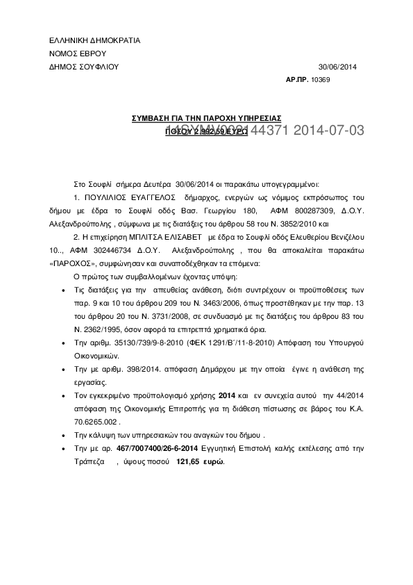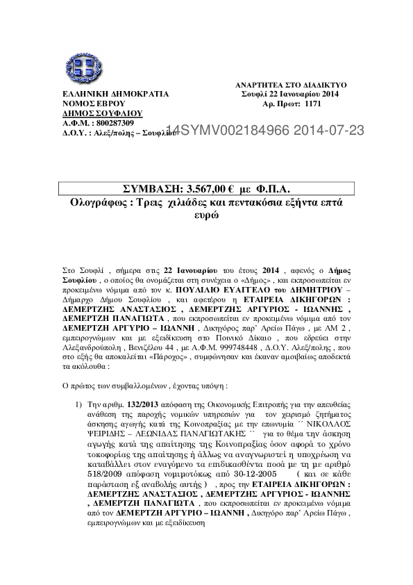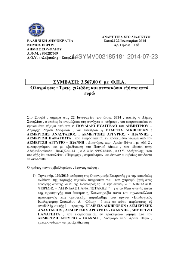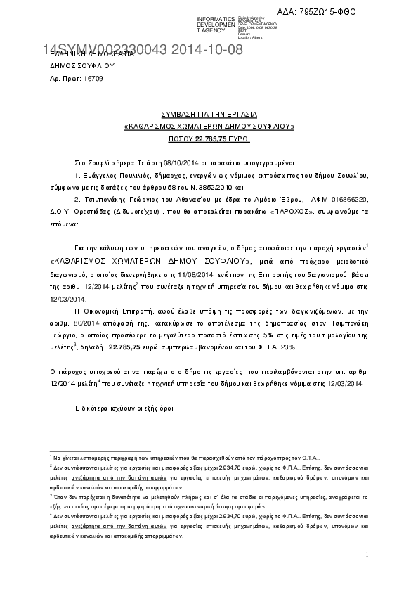 6. ΣΥΜΒΑΣΗ ΓΙΑ ΤΗΝ ΕΡΓΑΣΙΑ "ΚΑΘΑΡΙΣΜΟΣ ΧΩΜΑΤΕΡΩΝ ΔΗΜΟΥ ΣΟΥΦΛΙΟΥ"
