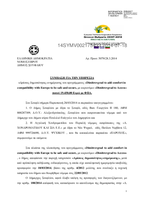 2. ΣΥΜΒΑΣΗ ΓΙΑ ΤΗΝ ΥΠΗΡΕΣΙΑ Δράσεις δημοσιότητας-ενημέρωσης του προγράμματος "Dimitrovgrad"
