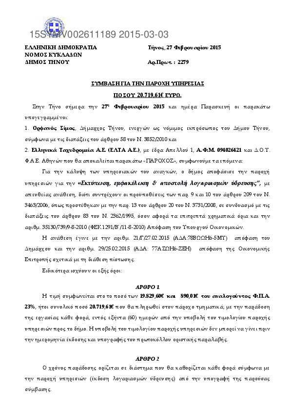 9. ΣΥΜΒΑΣΗ ΓΙΑ ΠΑΡΟΧΗ ΥΠΗΡΕΣΙΑΣ