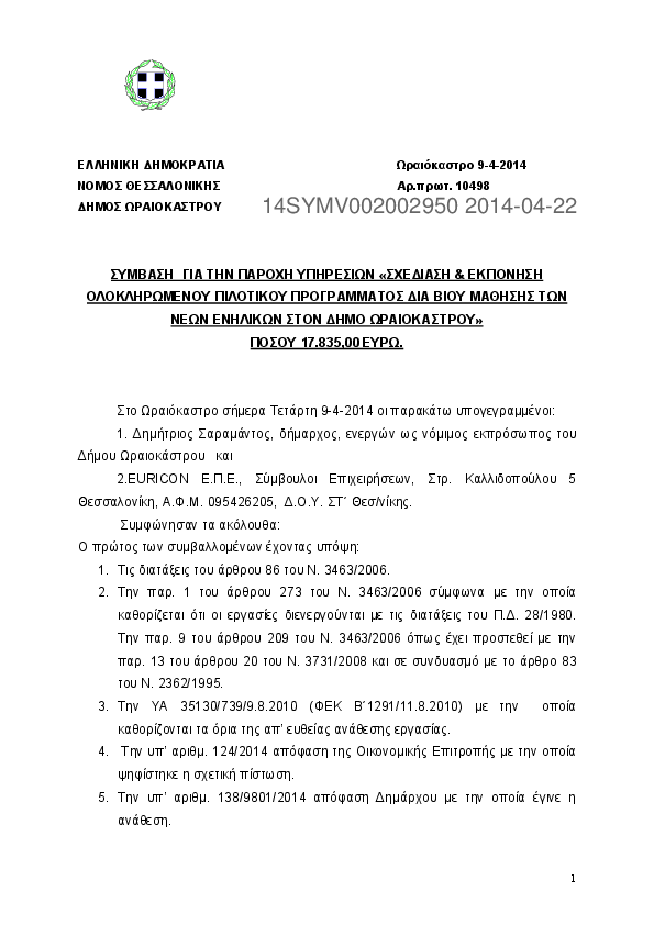 Αναζήτηση σε προκηρύξεις και συμβάσεις για:  ΠΑΡΟΧΟΣ