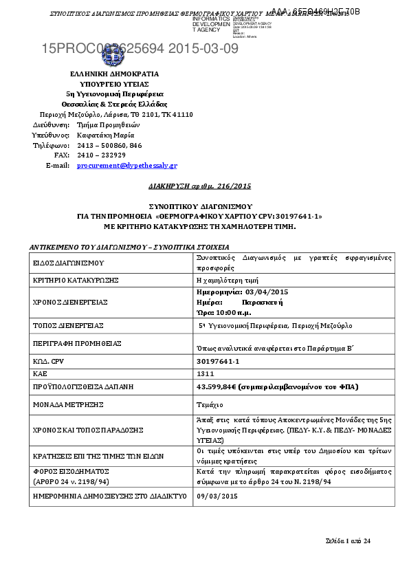 4. ΔΙΑΚΗΡΥΞΗ ΠΡΟΜΗΘΕΙΑΣ ΘΕΡΜΟΓΡΑΦΙΚΟΥ ΧΑΡΤΙΟΥ