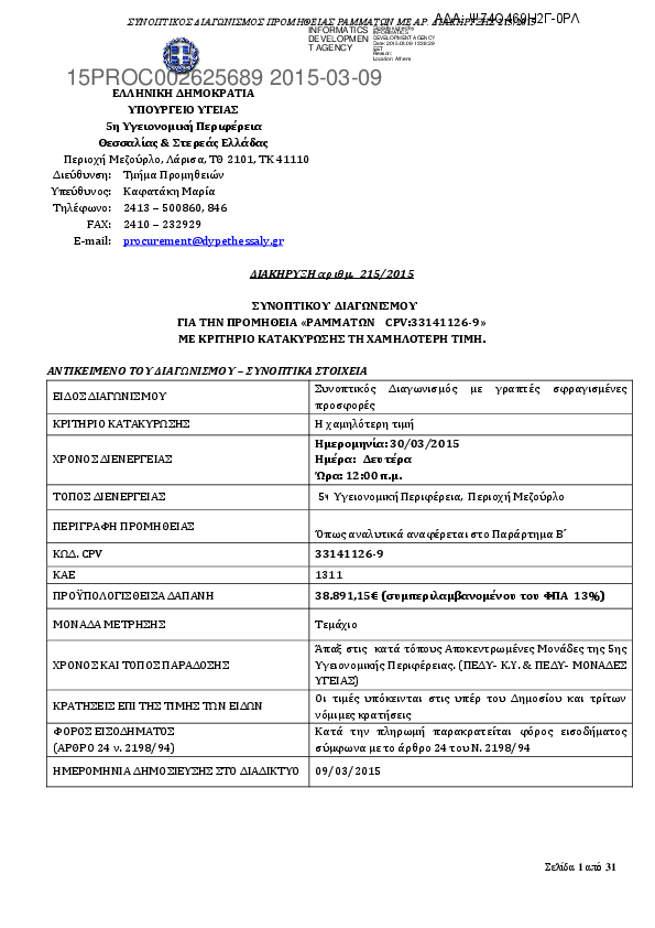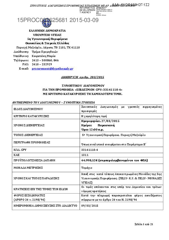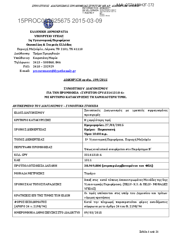Αναζήτηση σε προκηρύξεις και συμβάσεις για: