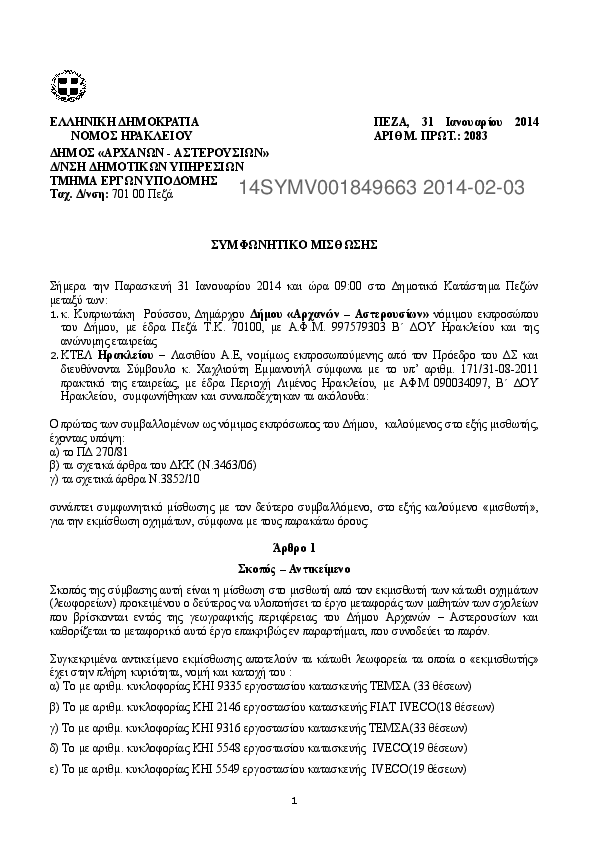 1. ΣΥΜΒΑΣΗ ΓΙΑ ΤΗΝ ΠΑΡΟΧΗ ΥΠΗΡΕΣΙΑΣ "ΨΕΚΑΣΜΟΣ ΔΕΝΔΡΩΝ ΚΑΤΑ ΤΗς ΠΙΤΥΟΚΑΜΠΗΣ"