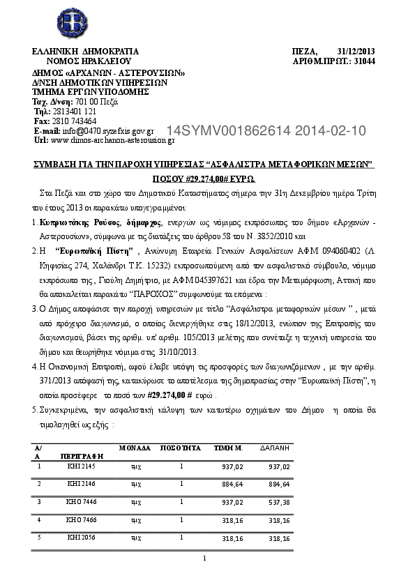 10. ΣΥΜΒΑΣΗ ΓΙΑ ΤΗΝ ΠΑΡΟΧΗ ΥΠΗΡΕΣΙΑΣ "ΑΣΦΑΛΙΣΤΡΑ ΜΕΤΑΦΟΡΙΚΩΝ ΜΕΣΩΝ"