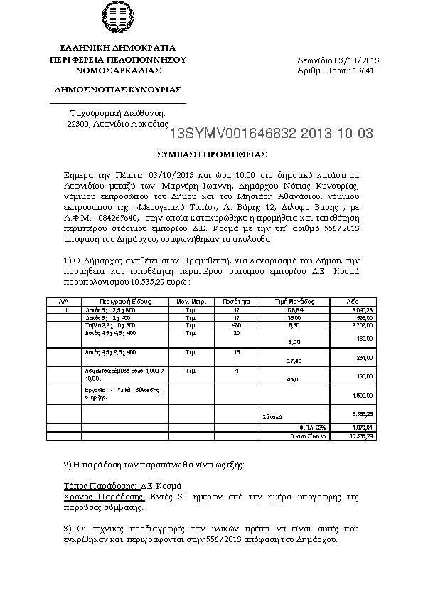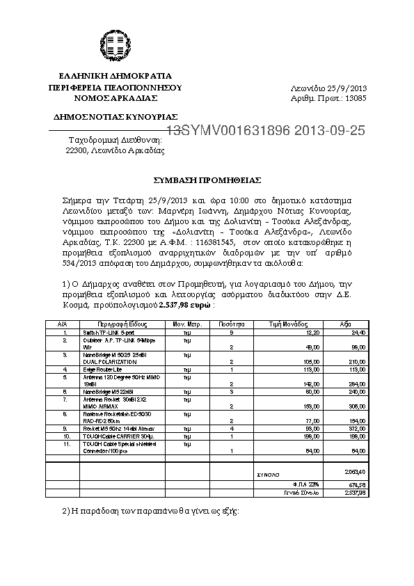 8. Σύμβαση προμήθειας εξοπλισμού και λειτουργίας ασύρματου διαδικτύου στην Δ.Ε. Κοσμά