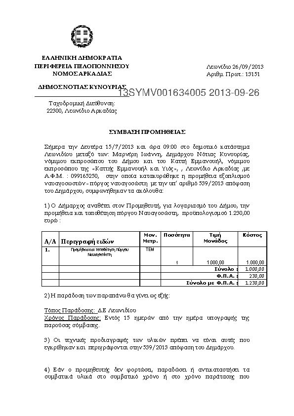 9. Σύμβαση προμήθειας εξοπλισμού Ναυαγοσωστών