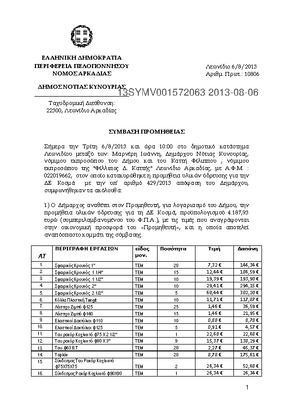 10. Προμήθεια υλικών ύδρευσης Δ.Ε. Κοσμά