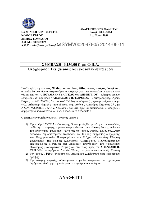2. ΠΑΡΟΧΗ ΝΟΜΙΚΩΝ ΥΠΗΡΕΣΙΩΝ ΣΤΟ ΔΗΜΟ ΣΟΥΦΛΙΟΥ