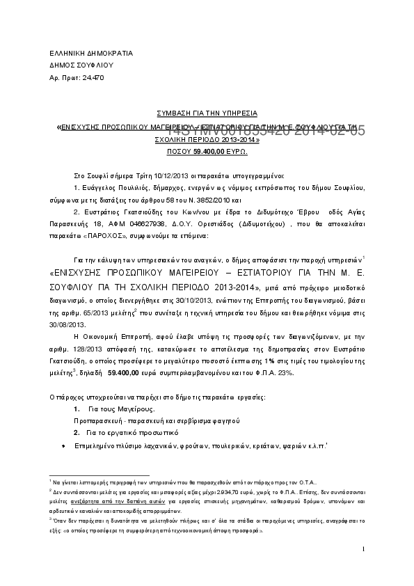 6. ΣΥΜΒΑΣΗ ΓΙΑ ΤΗΝ ΥΠΗΡΕΣΙΑ«ΕΝΙΣΧΥΣΗΣ ΠΡΟΣΩΠΙΚΟΥ ΜΑΓΕΙΡΕΙΟΥ – ΕΣΤΙΑΤΟΡΙΟΥ ΓΙΑ ΤΗΝ Μ. Ε. ΣΟΥΦΛΙΟΥ ΓΙΑ ΤΗ