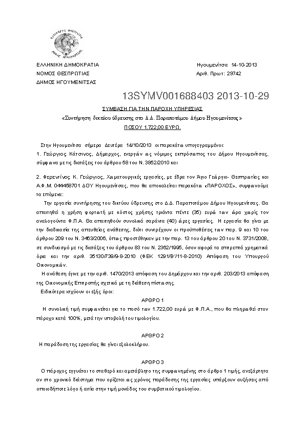 10. Συντήρηση δικτύου ύδρευσης στο Δ.Δ. Παραποτάμου Δήμου Ηγουμενίτσας.