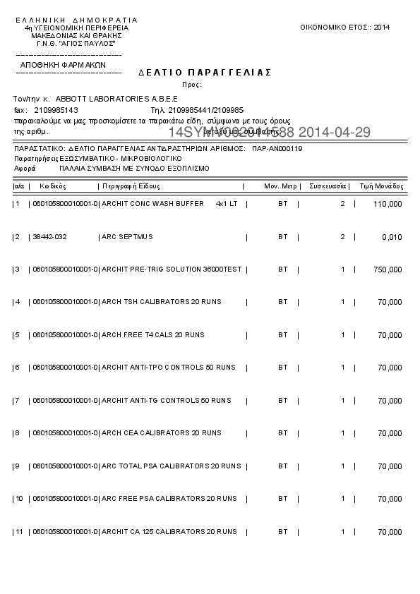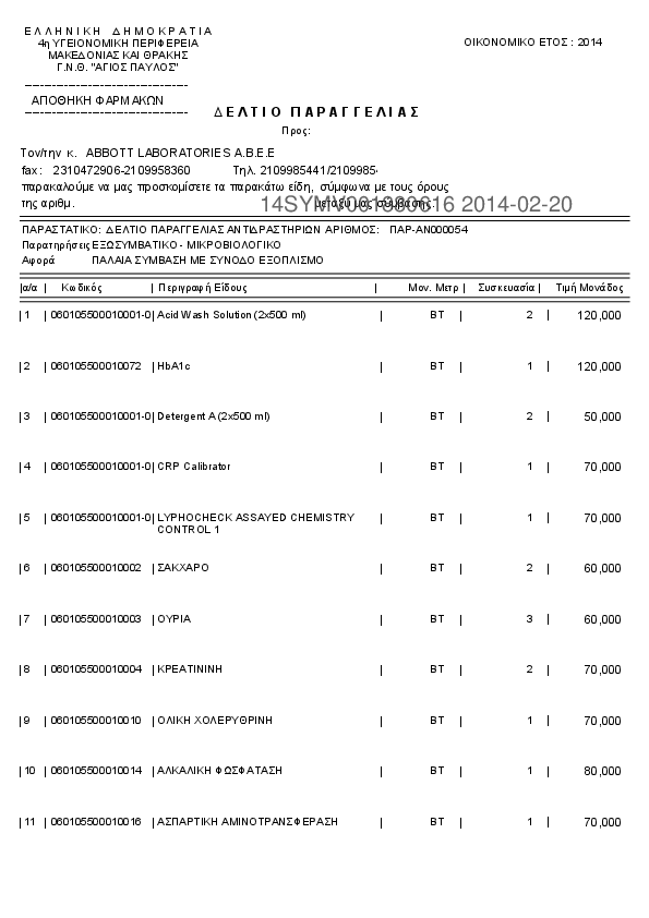 9. ΔΕΛΤΙΟ ΠΑΡΑΓΓΕΛΙΑΣ ΑΝΤΙΔΡΑΣΤΗΡΙΩΝ ΝΟΣΟΚΟΜΕΙΟΥ "ΑΓ. ΠΑΥΛΟΣ"