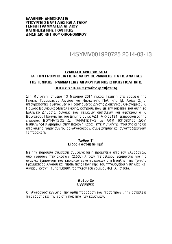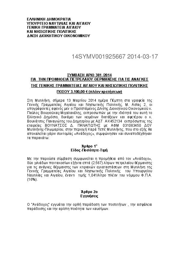 3. ΣΥΜΒΑΣΗ ΓΙΑ ΤΗΝ ΠΡΟΜΗΘΕΙΑ ΠΕΤΡΕΛΑΙΟΥ ΘΕΡΜΑΝΣΗΣ ΓΙΑ ΤΙΣ ΑΝΑΓΚΕΣ ΤΗΣ ΓΓΑΙ&ΝΠ
