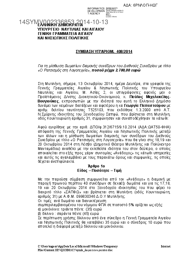 7. ΣΥΜΒΑΣΗ ΥΠ’ΑΡΙΘΜ. 408/2014