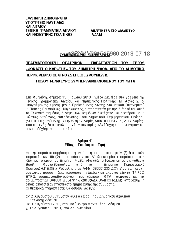 7. ΠΡΑΓΜΑΤΟΠΟΙΗΣΗ ΘΕΑΤΡΙΚΩΝ ΠΑΡΑΣΤΑΣΕΩΝ ΤΟΥ ΕΡΓΟΥ «ΦΩΝΑΖΕΙ Ο ΚΛΕΦΤΗΣ» ΤΟΥ ΔΗΜΗΤΡΗ ΨΑΘΑ, ΑΠΟ ΤΟ ΔΗΜΟΤΙ