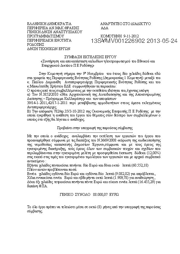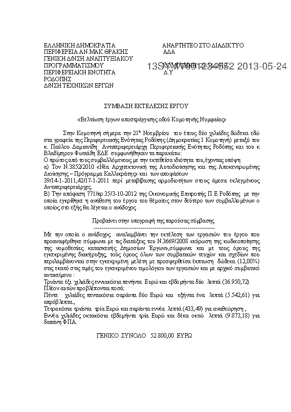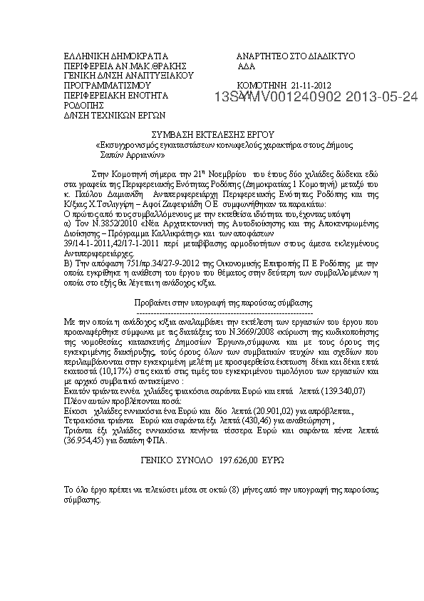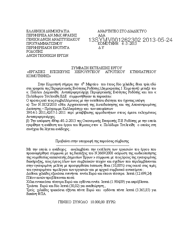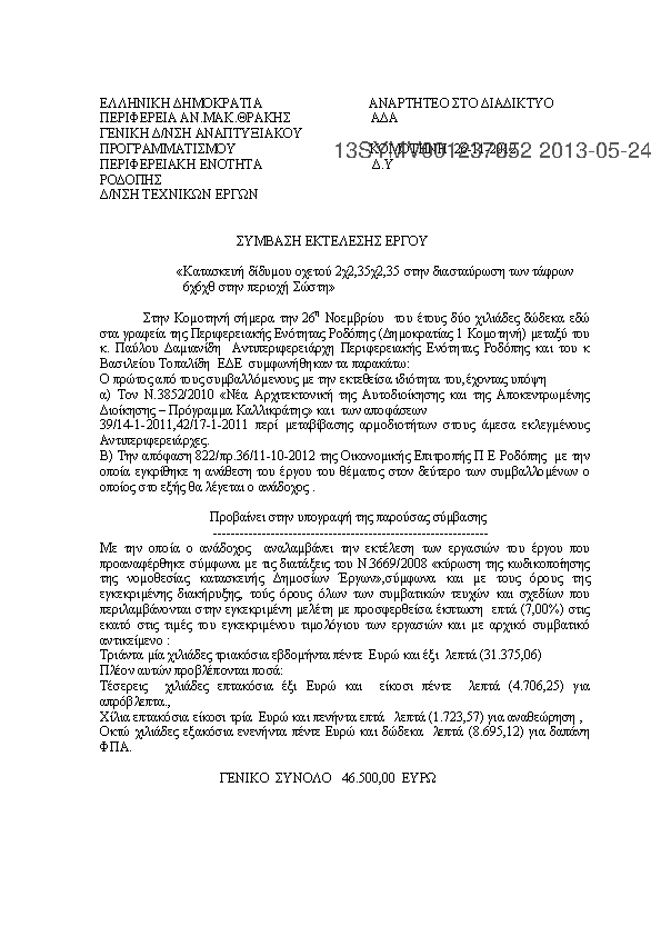 7. Σύμβαση Μίσθωσης Μηχανηματων για το έργο "Καθαρισμός και εκβάθυνση ρεμάτων Ν.Ροδόπης"