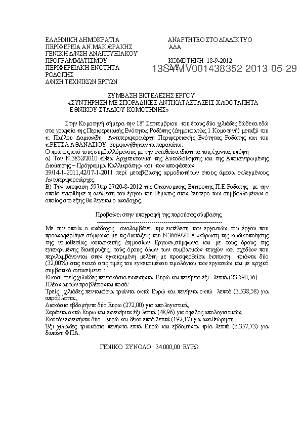 1. ΣΥΝΤΗΡΗΣΗ ΜΕ ΣΠΟΡΑΔΙΚΕΣ ΑΝΤΙΚΑΤΑΣΤΑΣΕΙΣ ΧΛΟΟΤΑΠΗΤΑ ΕΘΝΙΚΟΥ ΣΤΑΔΙΟΥ ΚΟΜΟΤΗΝΗΣ