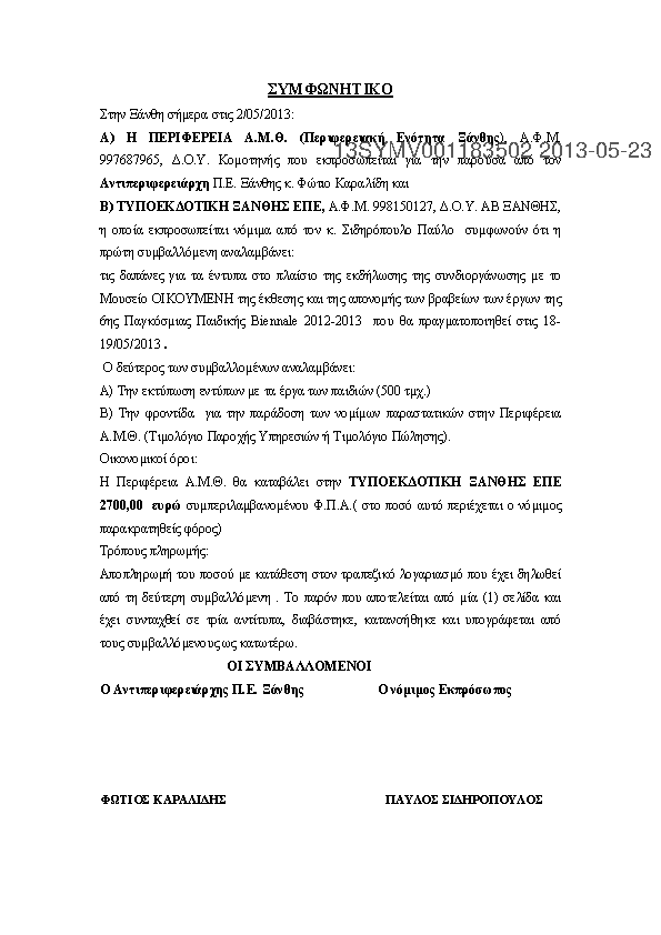8. ΣΥΜΦΩΝΗΤΙΚΟ ΓΙΑ ΤΗΝ ΕΚΤΥΠΩΣΗ ΕΝΤΥΠΩΝ ΣΤΑ ΠΛΑΙΣΙΑ ΤΗΣ 6ης ΠΑΓΚΟΣΜΙΑΣ ΠΑΙΔΙΚΗΣ BIENNALE