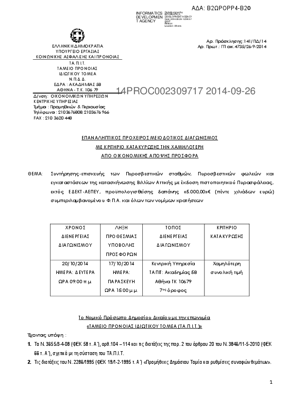 Αναζήτηση σε προκηρύξεις και συμβάσεις για: