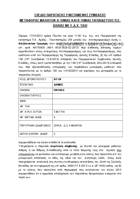1. ΣΧΕΔΙΟ ΠΑΡΑΤΑΣΗΣ ΥΦΙΣΤΑΜΕΝΗΣ ΣΥΜΒΑΣΗΣ ΜΕΤΑΦΟΡΑΣ ΜΑΘΗΤΩΝ Α΄/ΘΜΙΑΣ ΚΑΙ Β΄/ΘΜΙΑΣ ΕΚΠΑΙΔΕΥΣΗΣ Π.Ε. ΑΧΑΪΑ
