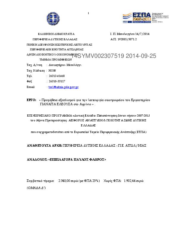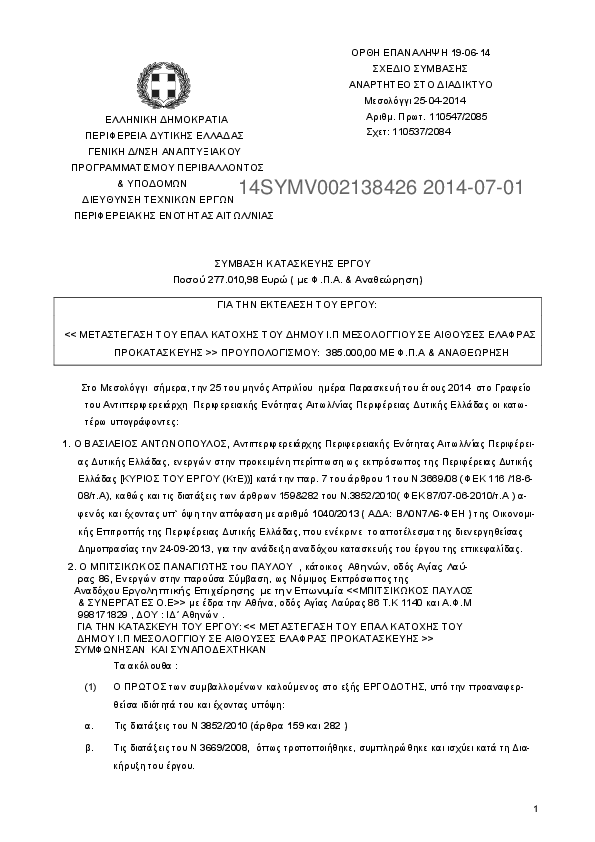 Αναζήτηση σε προκηρύξεις και συμβάσεις για: