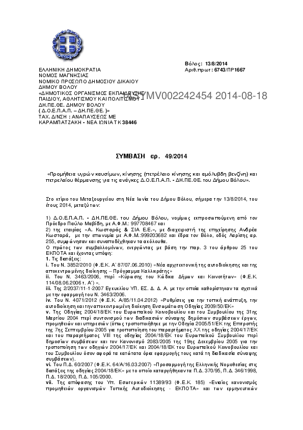 7. Προμήθεια υγρών καυσίμων, κίνησης (πετρέλαιο κίνησης και αμόλυβδη βενζίνη) και πετρελαίου θέρμανσης