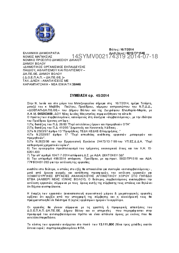 Αναζήτηση σε προκηρύξεις και συμβάσεις για: