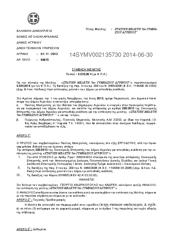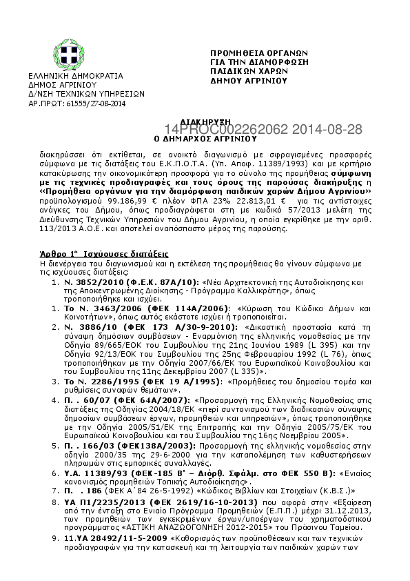 Αναζήτηση σε προκηρύξεις και συμβάσεις για: