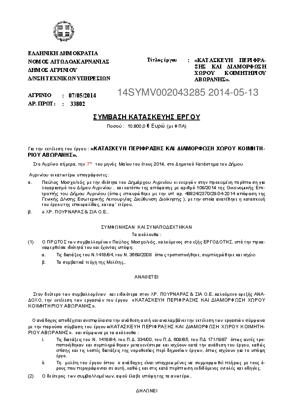 2. ΚΑΤΑΣΚΕΥΗ ΠΕΡΙΦΡΑΞΗΣ ΚΑΙ ΔΙΑΜΟΡΦΩΣΗ ΧΩΡΟΥ ΚΟΙΜΗΤΗΡΙΟΥ ΑΒΩΡΑΝΗΣ