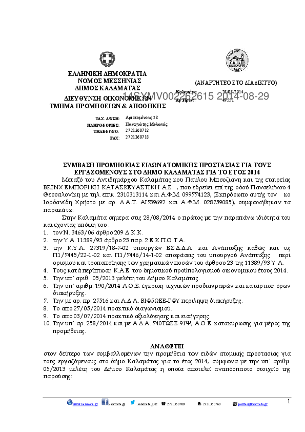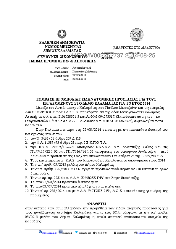 8. ΠΡΟΜΗΘΕΙΑ ΕΙΔΩΝ ΑΤΟΜΙΚΗΣ ΠΡΟΣΤΑΣΙΑΣ ΓΙΑ ΤΟΥΣ ΕΡΓΑΖΟΜΕΝΟΥΣ ΣΤΟ ΔΗΜΟ ΚΑΛΑΜΑΤΑΣ ΓΙΑ ΤΟ ΕΤΟΣ 2014