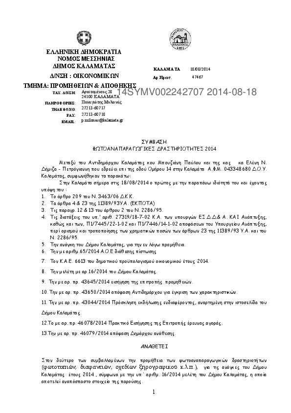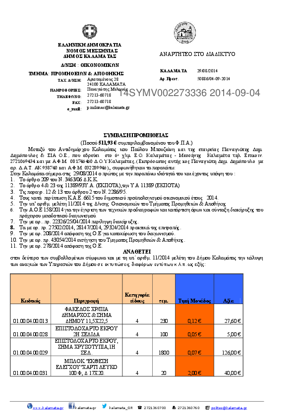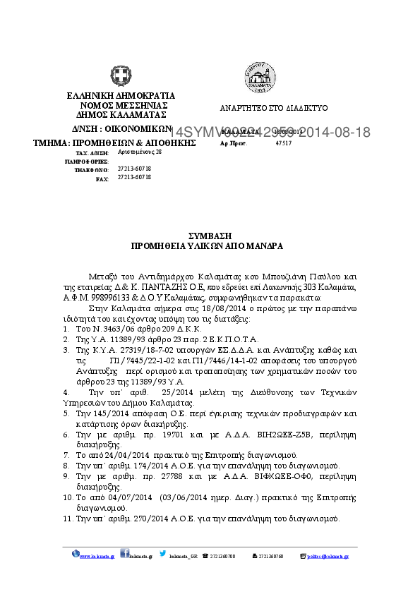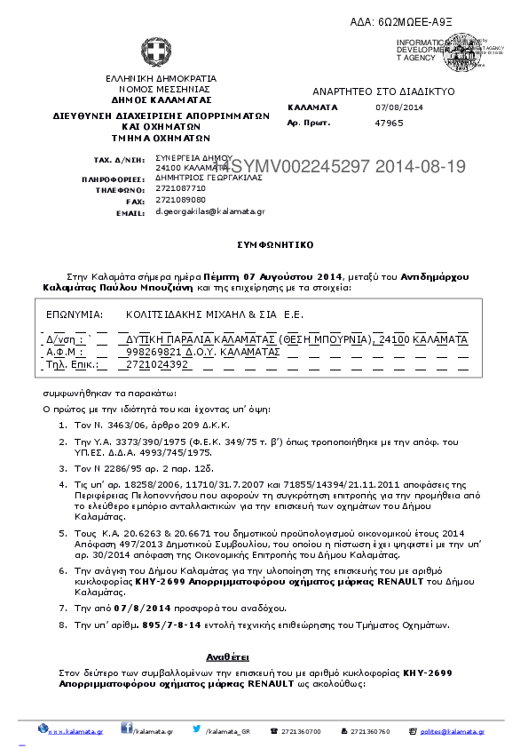 5. ΣΥΜΦΩΝΗΤΙΚΟ ΜΕΤΑΞΥ ΤΟΥ ΔΗΜΟΥ ΚΑΛΑΜΑΤΑΣ & ΤΟΥ ΚΟΛΙΤΣΙΔΑΚΗ ΜΙΧΑΗΛ ΚΑΙ ΣΙΑ Ε.Ε.