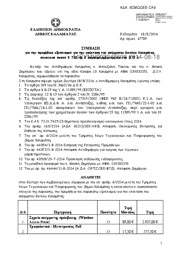 1. ΠΡΟΜΗΘΕΙΑ ΕΞΟΠΛΙΣΜΟΥ ΓΙΑ ΤΗΝ ΕΠΕΚΤΑΣΗ ΤΟΥ ΑΣΥΡΜΑΤΟΥ ΔΙΚΤΥΟΥ ΚΑΛΑΜΑΤΑΣ