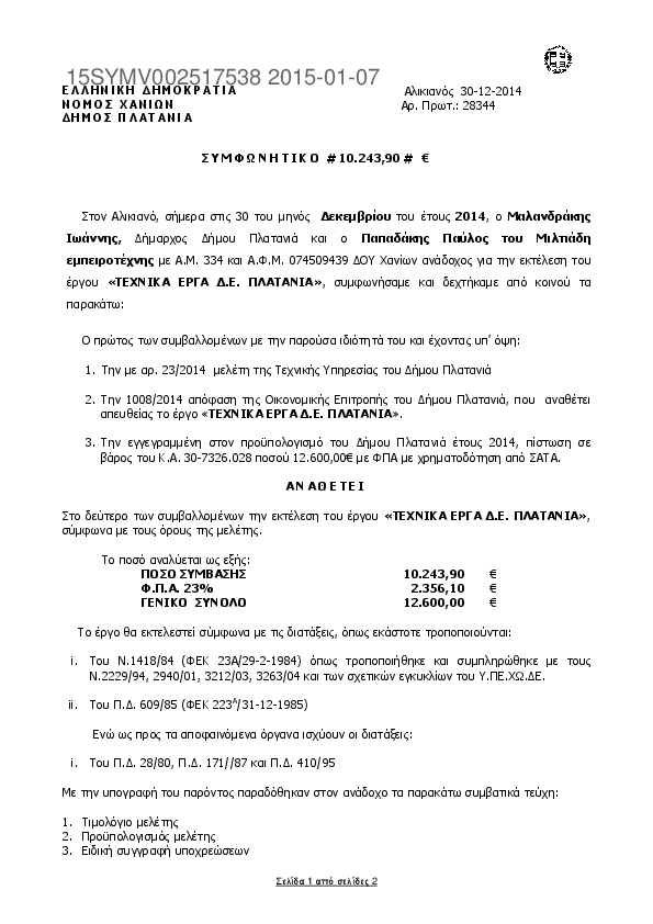 1. ΤΕΧΝΙΚΑ ΕΡΓΑ Δ.Ε. ΠΛΑΤΑΝΙΑ