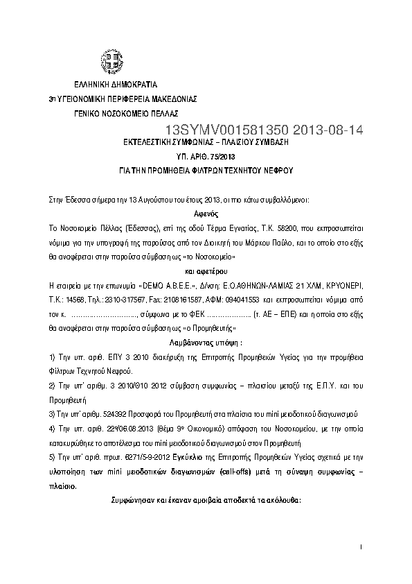 7. ΣΥΜΒΑΣΗ ΦΙΛΤΡΑ ΤΕΧΝΙΤΟΥ ΝΕΦΡΟΥ DEMO