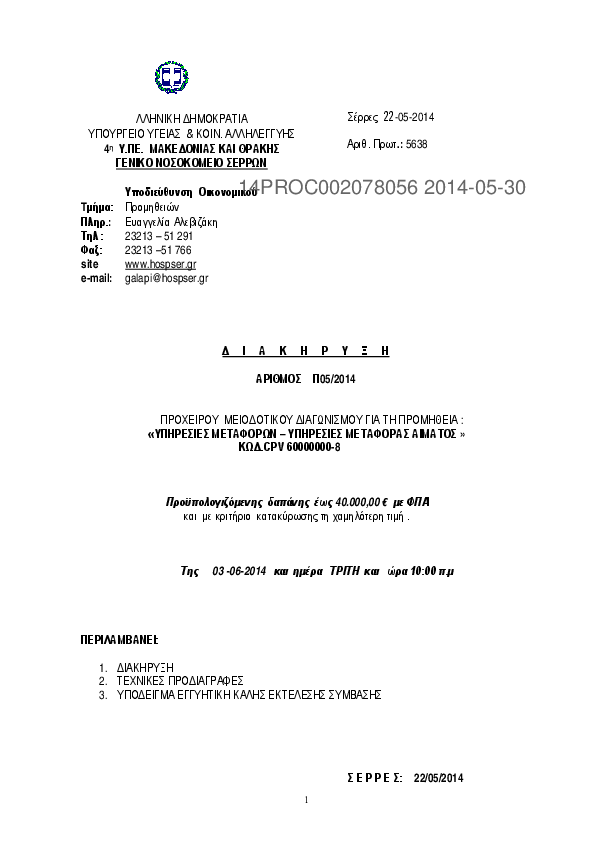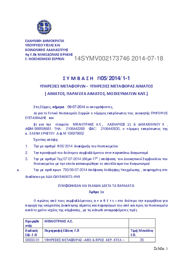 1. ΥΠΗΡΕΣΙΕΣ ΜΕΤΑΦΟΡΩΝ-ΥΠΗΡΕΣΙΕΣ ΜΕΤΑΦΟΡΑΣ ΑΙΜΑΤΟΣ