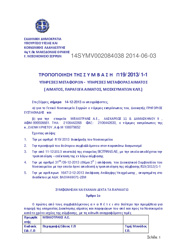 2. ΤΡΟΠΟΠΟΙΗΣΗ ΤΗΣ ΣΥΜΒΑΣΗΣ ΥΠΗΡΕΣΙΕΣ ΜΕΤΑΦΟΡΩΝ - ΥΠΗΡΕΣΙΕΣ ΜΕΤΑΦΟΡΑΣ ΑΙΜΑΤΟΣ