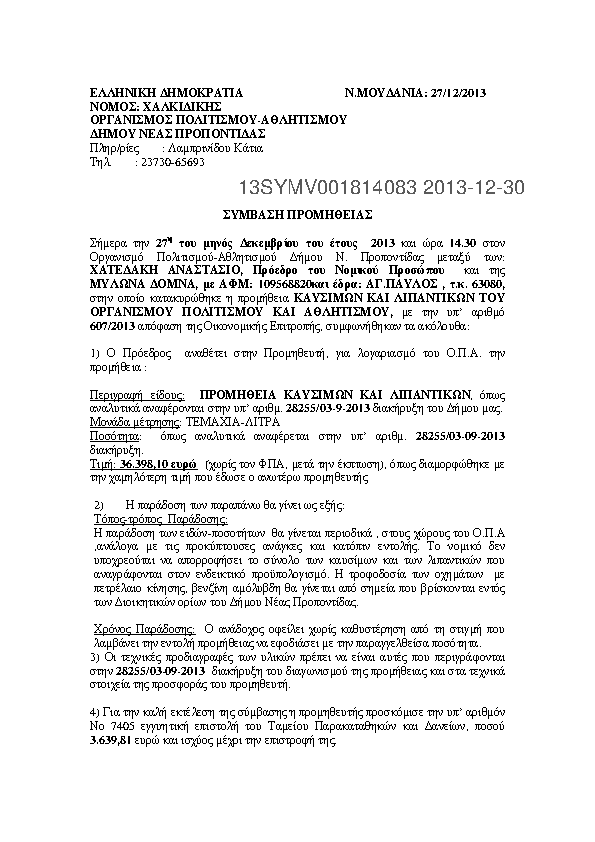 5. ΣΥΜΒΑΣΗ ΠΡΟΧΕΙΡΟΥ ΔΙΑΓΩΝΙΣΜΟΥ ΓΙΑ ΤΗΝ ΚΑΛΥΨΗ ΑΝΑΓΚΩΝ ΣΕ ΕΞΟΠΛΙΣΜΟ ΠΛΗΡΟΦΟΡΙΚΗΣ