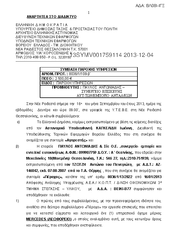 1. ΣΥΜΒΑΣΗ ΠΑΡΟΧΗΣ ΥΠΗΡΕΣΙΩΝ MERCEDES ΛΕΩΦΟΡΕΙΑ