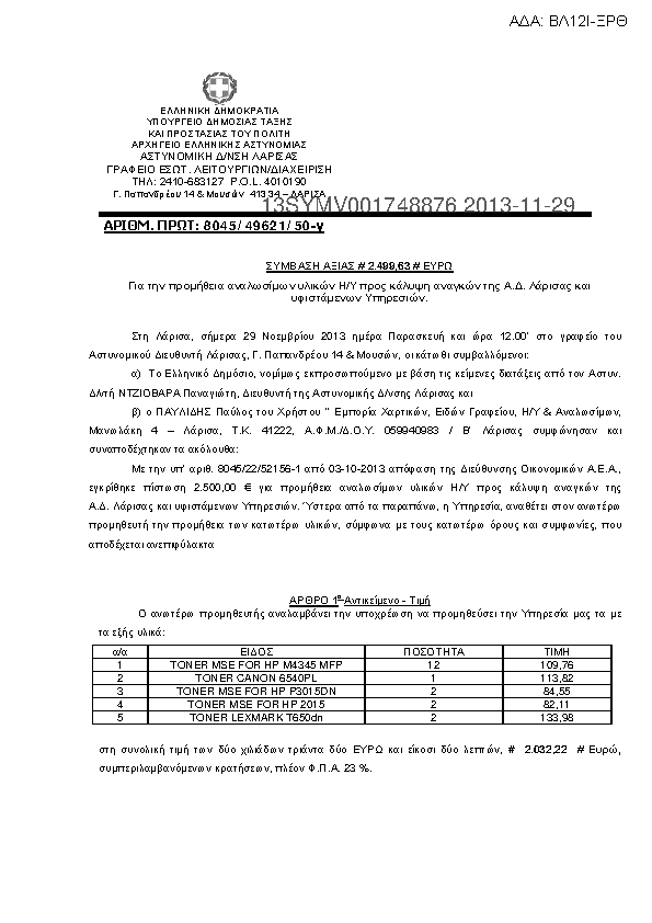 4. Προμήθεια αναλωσίμων υλικών Η/Υ έτους 2013
