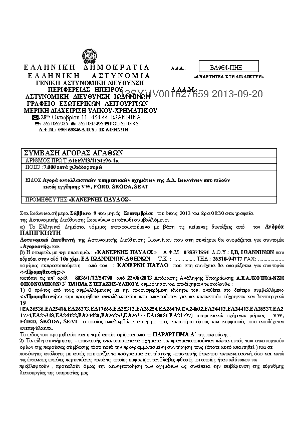 9. ΣΥΜΒΑΣΗ ΠΡΟΜΗΘΕΙΑΣ ΑΝΤΑΛΛΑΚΤΙΚΩΝ ΑΥΤΟΚΙΝΗΤΩΝ